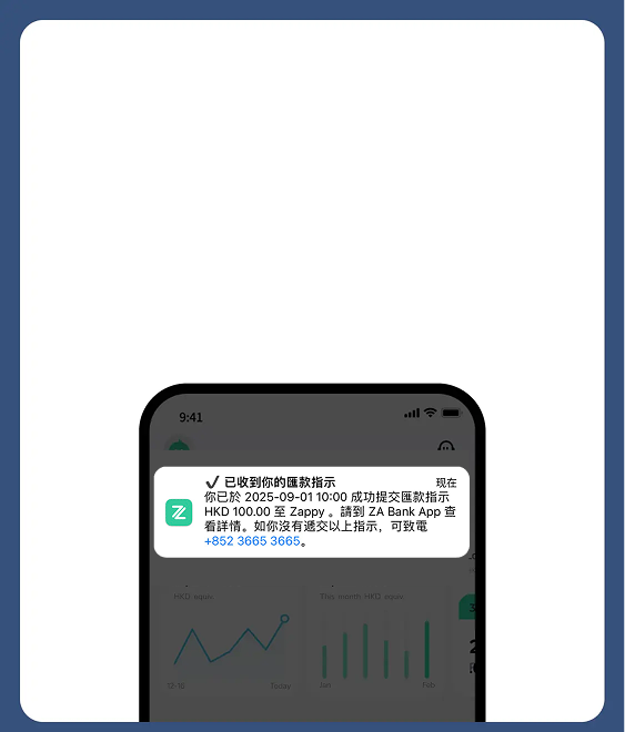 ZA Bank 作為香港持牌數字銀行,以科技突破傳統銀行服務的限制,讓銀行體驗更方便,但保障同樣安全,兼享 24 x 7 客服全天候支援!