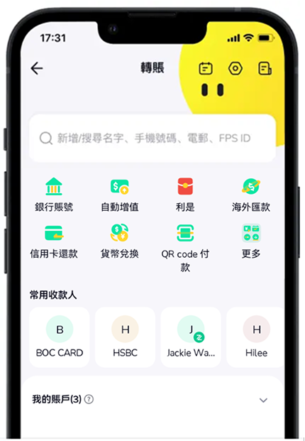 打開 ZA Bank App,進入「轉賬」頁面,點擊「海外匯款」