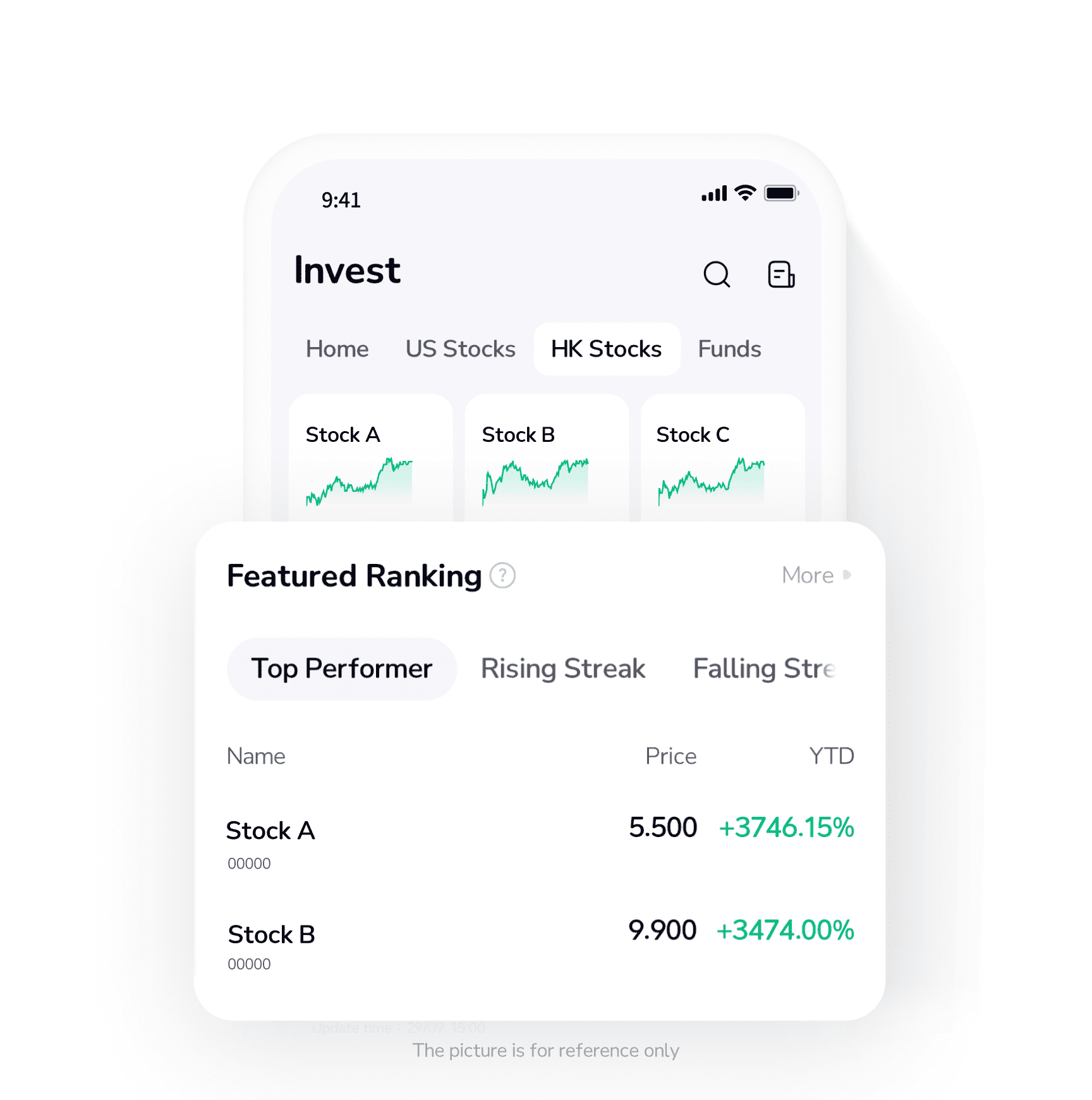 ♦The time needed for investment account opening is subject to actual circumstances. In general, provided that no extra information is required, an existing ZA Bank user can open an investment account and complete fund subscriptions in as fast as 1 minutes.