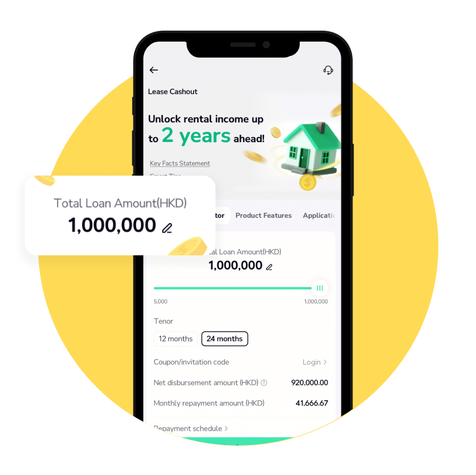 1. The handling fee is calculated based on a specified percentage of the loan principal, with a 5% handling fee for the 12-month tenor (APR of 10.01%) and an 8% handling fee for the 24-month tenor (4% annual handling fee, APR of 8.45%). The handling fee will be deducted from the loan disbursement amount. The APR is calculated using the method specified in relevant guidelines issued by the Hong Kong Association of Banks and is rounded up or down to the nearest two decimal places. The APR is a reference rate, which includes the basic interest rates and other fees and charges (if applicable) of a product expressed as an annualised rate.