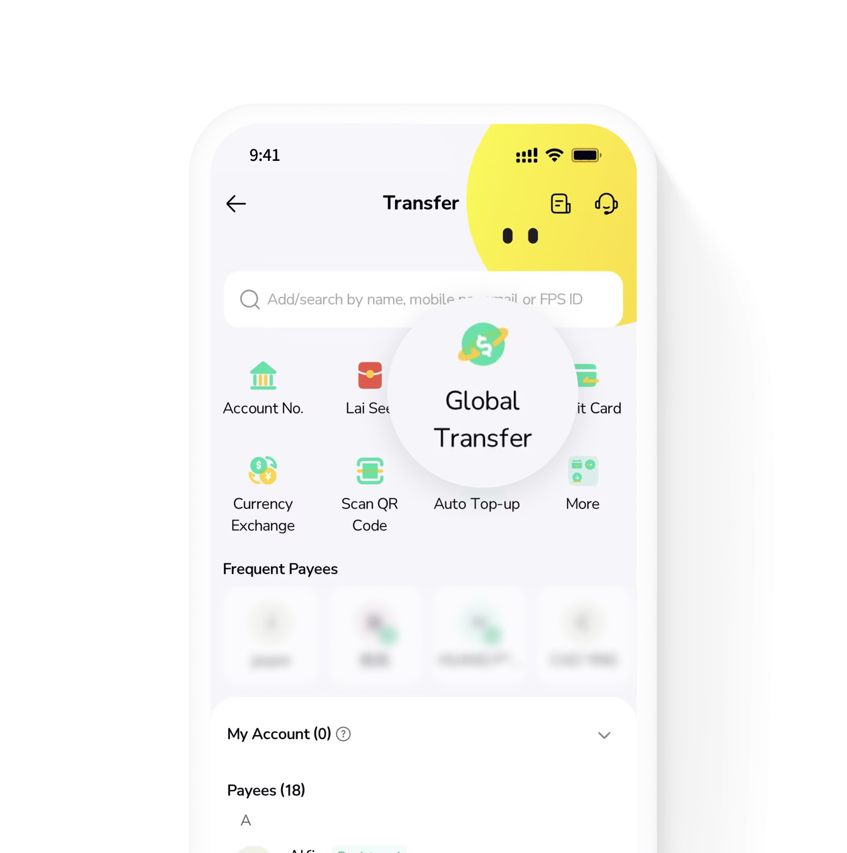 Open the ZA Bank App, go to the Transfer page, and tap Global Transfer