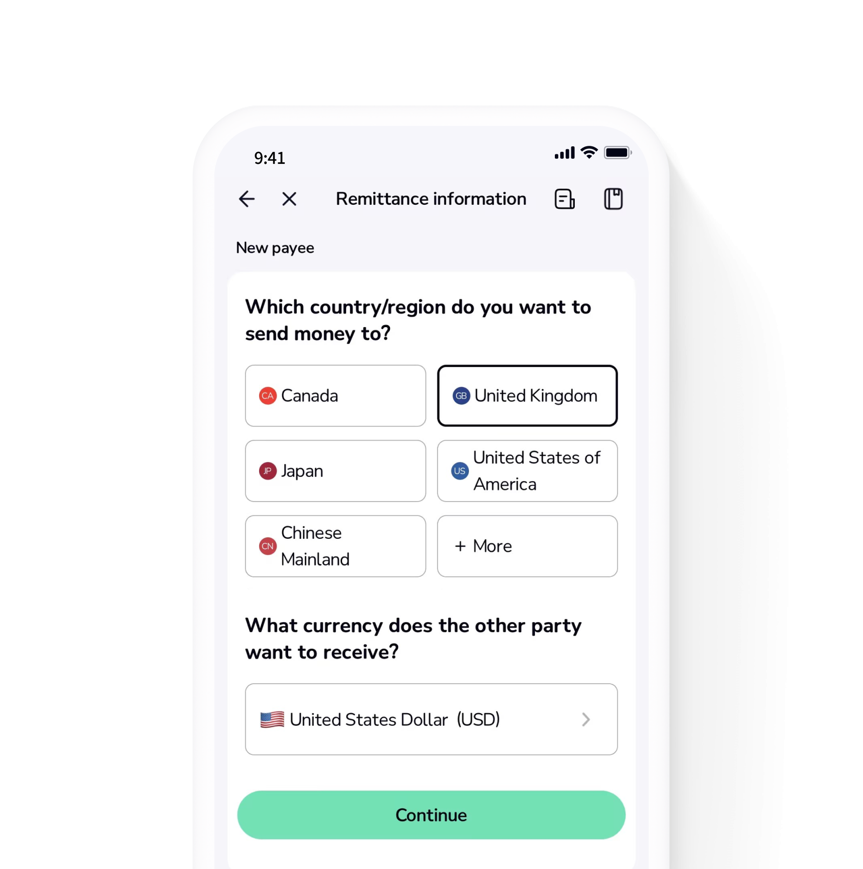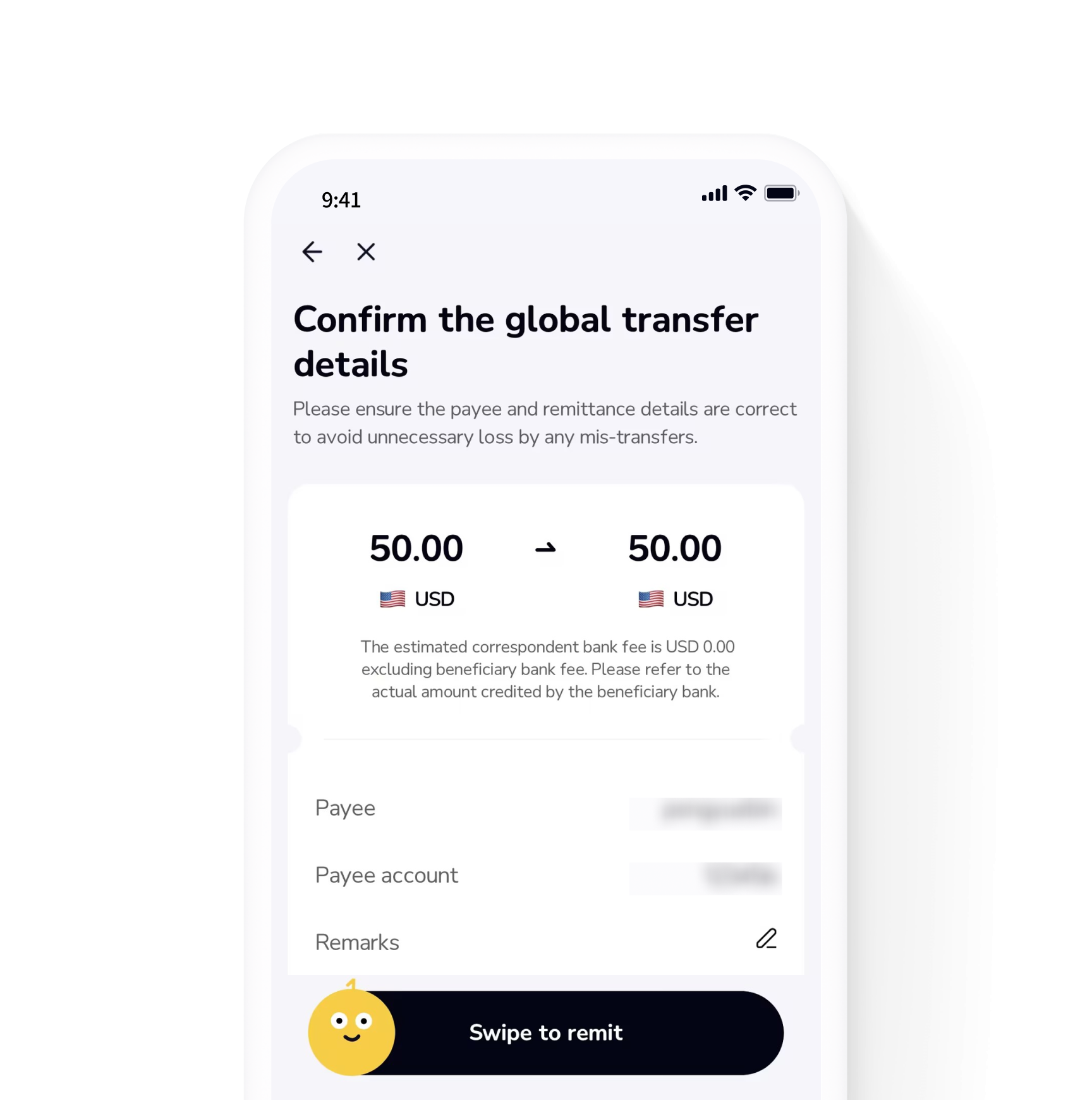 • Transfer seamlessly to 140+ countries and regions via SWIFT.