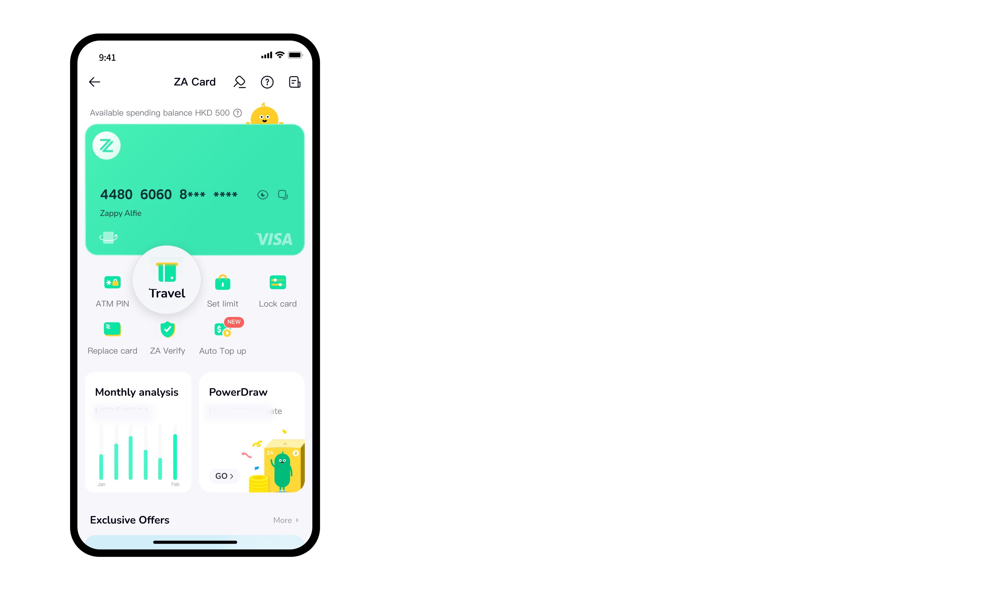 1. Login to ZA Bank App > Account > ZA Card and tab ‘Travel’