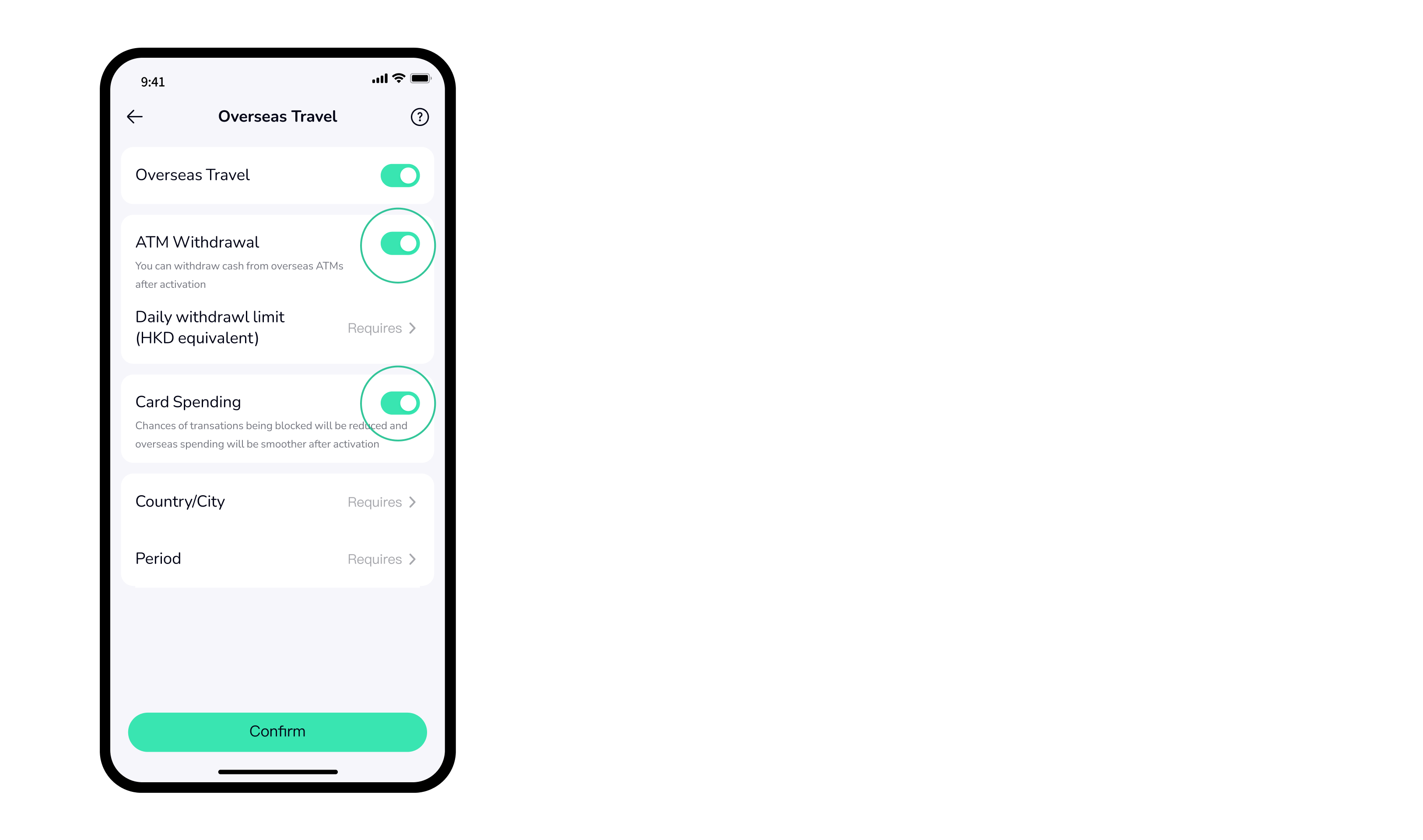 Reminder: Activating ‘Card Spending’ can reduce the chance of overseas transactions being blocked. Even when this function is deactivated, we will continue to safeguard your spending experience by scanning and blocking high-risk transactions.