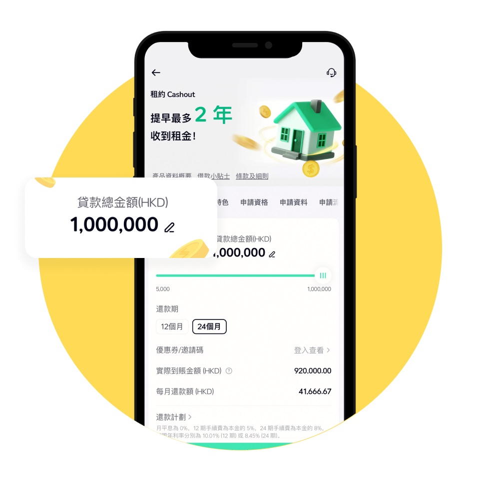 1. 手續費按貸款本金的指定百分比計算,還款期 12 個月為 5%(實際年利率 10.01%);還款期 24 個月為 8%(每年手續費為 4%,實際年利率 8.45%)。手續費將於貸款放款金額中扣除。實際年利率是採用香港銀行公會所載的有關指引計算,並已被約至小數後兩個位。實際年利率是一個參考利率,以年化利率展示出包括銀行產品的基本利率及其他費用與收費(如適用)。
