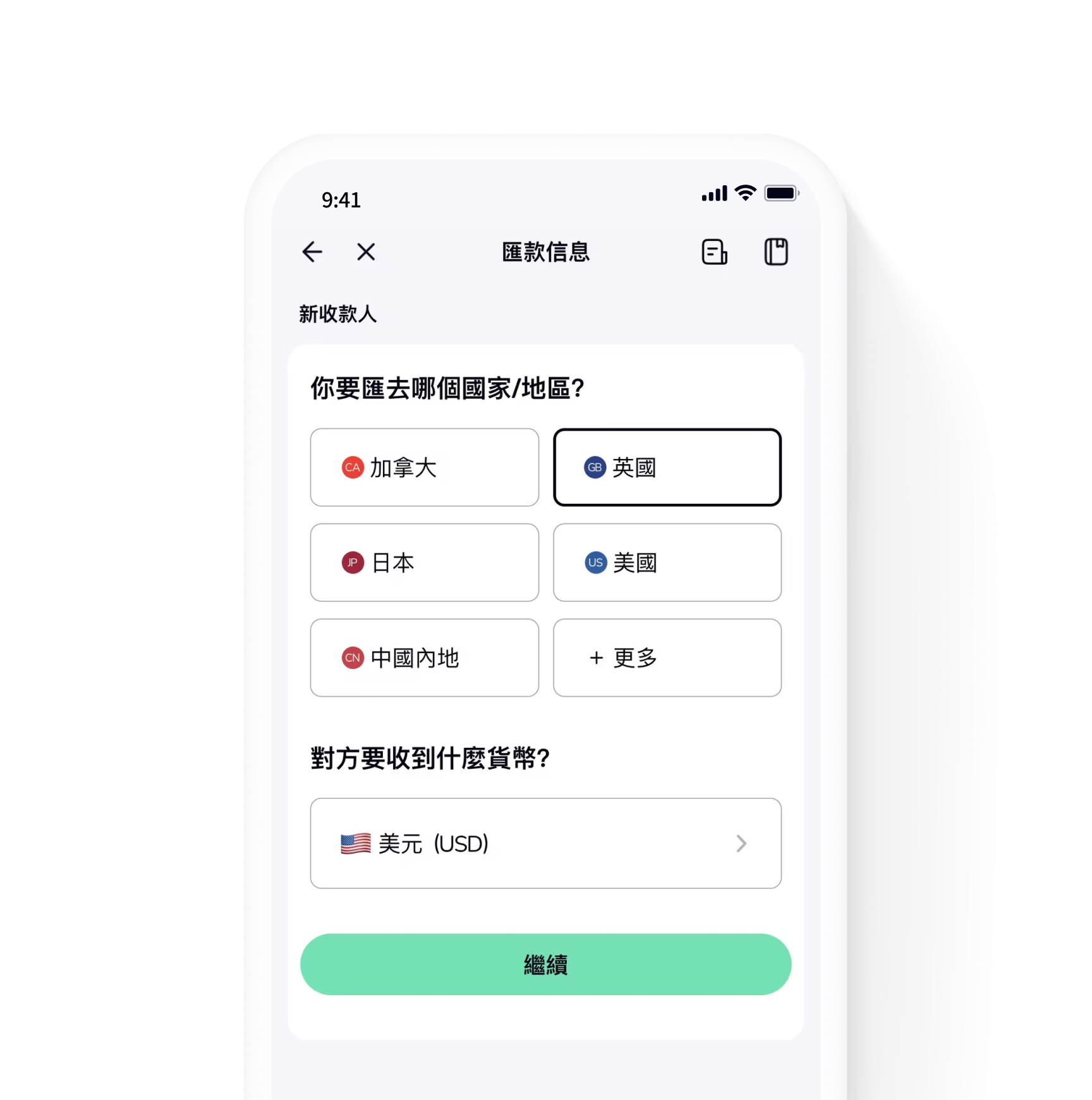 選擇匯款目的地國家/地區和貨幣