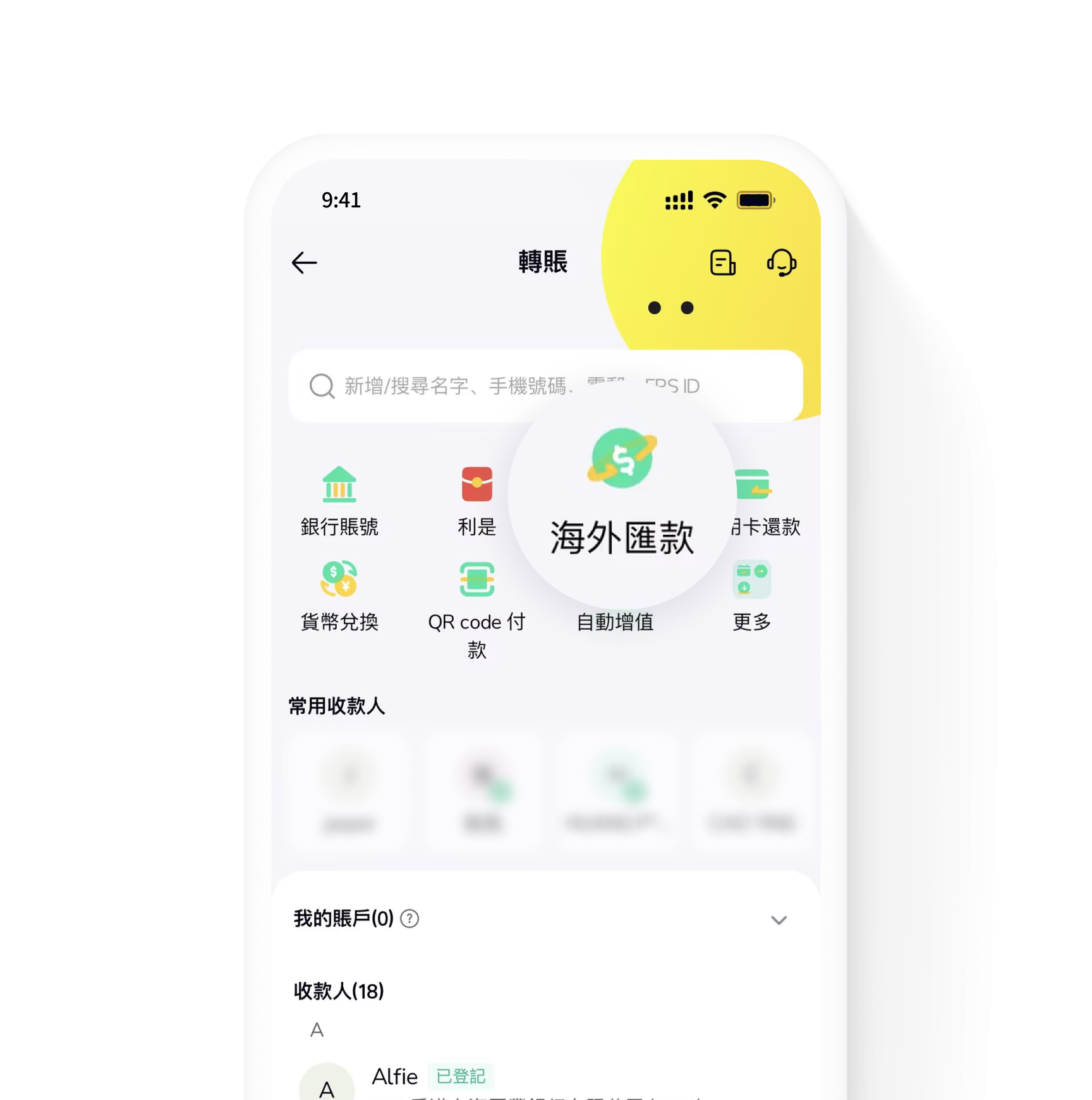 打開 ZA Bank App,進入「轉賬」頁面,點擊「海外匯款」