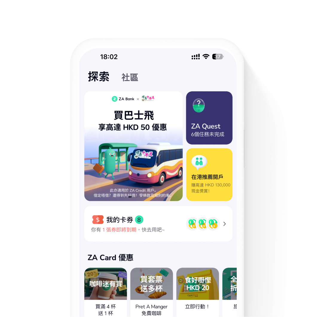 投資涉及風險。投資產品價格可升可跌,甚至變成毫無價值。過往表現並非日後表現的指標。投資未必一定能夠賺取利潤,亦可能會招致損失。此平台的資料只供參考,並不構成及不應被視為任何建議、推銷、游說客戶認購或出售任何投資產品。投資者應根據本身投資經驗、投資目標、財務狀況及承擔風險程度等因素去衡量是否適合投資於該產品上。若有需要,請諮詢獨立專業建議。投資者作出任何投資決定前,應詳細閱讀有關之章則及條件,投資產品認購章程及其風險披露聲明。本平台之內容並未經證監會或任何香港的監管機構審閱。 ZA Bank 以代理人身份辦理你的指示。投資產品由第三方提供。若因銷售過程或處理有關交易產生合資格爭議 (定義見金融糾紛調解計劃的金融糾紛調解中心的職權範圍),ZA Bank 會與你進行金融糾紛調解計劃程序;然而,對於有關產品的合約條款的任何爭議,應由第三方產品發行人與你直接解決。ZA Bank 無意讓任何人於任何受限制或未獲法律或法規授權分發或使用此平台的司法管轄區、國家或地區內,分發或使用此平台。如你並非身處香港,我們或未獲授權於你身處或居住的國家或地區向你提供產品及服務。