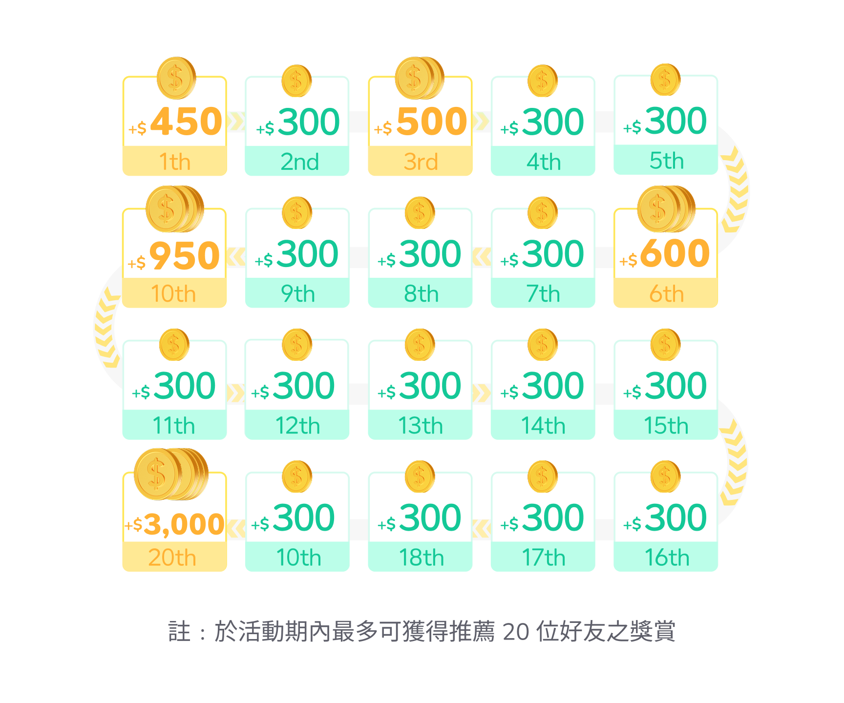 客戶推薦客戶活動(「MGM活動」) 由 2026 年 1 月 29 日開始至 2026 年 3 月 25 日結束(包括首尾兩日),被推薦人必須為 ZA Bank 的新客戶,未曾持有任何 ZA Bank 的產品(包括但不限於存款賬戶、貸款賬戶),以及成功使用推薦人的邀請碼在港開立 ZA Bank 賬戶。被推薦人在成功開戶後可獲得「被推薦人開戶獎賞」,被推薦人在完成入錢條件後可獲得「被推薦人入錢獎賞」, 被推薦人在完成達標條件後可獲得「被推薦人達標獎賞」。活動期共分為 8 個階段,於每個階段內,推薦開戶數目最多的前 20 名推薦人可獲得「推薦人排行榜獎賞」。推薦人在被推薦人完成入錢條件後可獲得「推薦人入錢獎賞」。推薦人在被推薦人完成達標條件後還可獲得「推薦人達標獎賞」。於活動期內累計推薦達指定數目,推薦人可額外獲「推薦人加碼獎賞」。上述奬賞將會在滿足條件後 30 個工作日內發放。活動受其