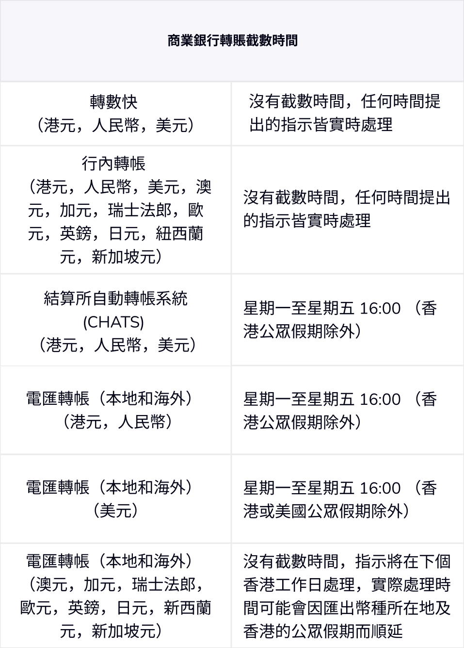 商業銀行轉賬截數時間